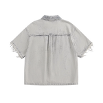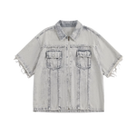 Fringe Sleeve Washed Denim Shirt